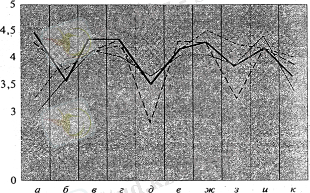 а - орналасуы; б - тамақтану сапасы; в - қауіпсіздік; г - қызметкерлер құрамының қабілеті; д - қосымша қызметтерді ұсыну; е - нөмірдің, дәретхананың, душтың тазалығы; ж - қызметкерлер құрамының сыпайылығы мен қонақжайлылығы; з - теледидар, видео, аудионың жұмыс істеуі; и - көршілердің тыныштығы мен мінез - құлқы; к - нөмірде жиһаздың болуы.