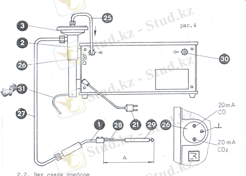 28 - пружиналы қысқыш, 29 - зондтың термо тұрақты шлангасы