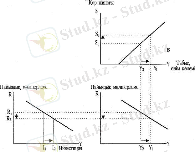 1 (ә) - суретте инвестиция функциясы бейнеленген, қор жинағының өсүі пайыз мөлшерлемесін R1- ден R2- ге азайтады, ал инвестиция I1- ден I2- ге өседі. Бұл жағдайда I1=S1, ал I2=S2 болады.