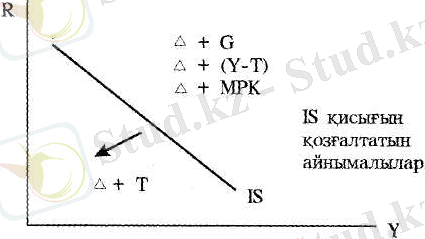 IS қисығы басқа факторлар тұрақты болған кездегі (G, T) пайыз мөлшерлемесі (R) мен жиынтық табыс (Y) арасындағы байланысты көрсетеді.