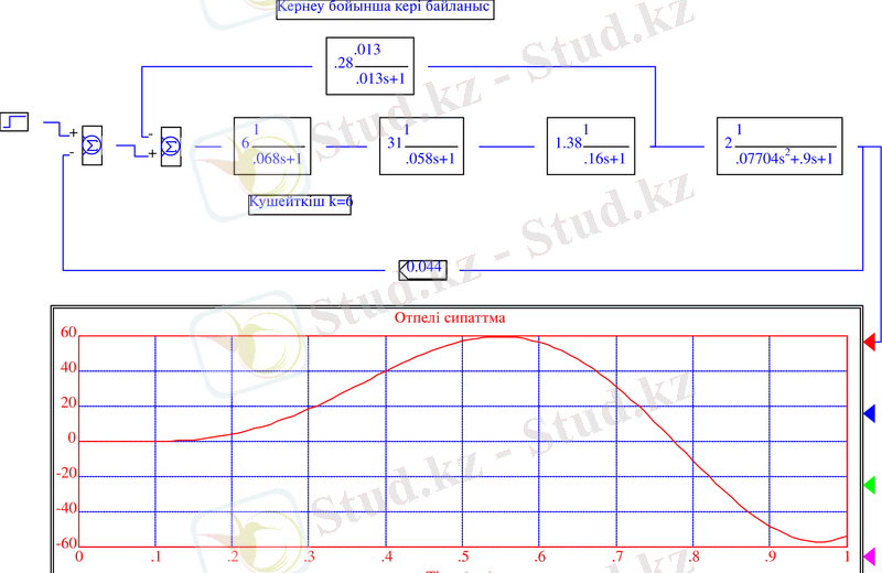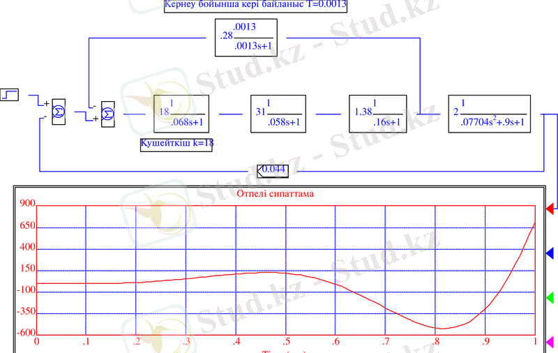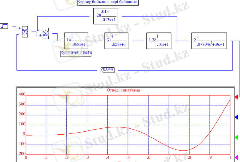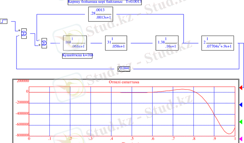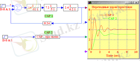 Байланысқан АРЖ тұрақты бола ма, белгісіз. Байланыспаған контурі (АРЖ-нің) тұрақтандырылды. Енді кері байланысты байланыстырып, АРЖ өтпелі сипаттамасы қалай болатынын тексереміз.