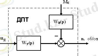 ДПТ - тұрақты тоқ двигателі, тербелістік буын. Оның беріліс функциясы басқару каналы бойынша табылады: