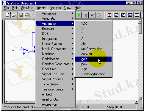 Модельдеуді VisSim программалық пакеті қолданумен іске асырамыз. Модельдеу арқылы анализдеу мүмкіндігі қамтамасыз етіледі, оның нәтижелерімен АРЖ-нің тиімделуі іске асырылады.