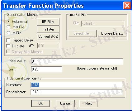 Параметрлерді енгізудің ерекшелігі бар: санағыш бос мүшесі болмайды, бұл жөнінде Vissim-де бос мүше коэффицентінің нольдік мәнін белгілеп көрсету керек.