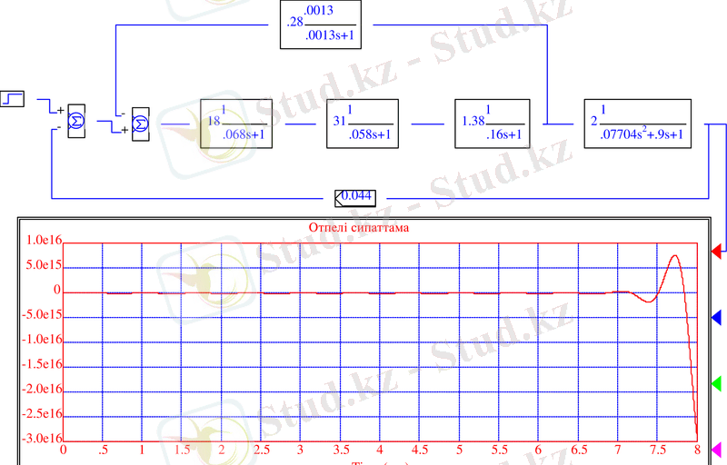Модельдің бақылаушы іске қосылуын жүргіземіз. өтпелі сипаттаманың тұрақталған мәнге асимптотикалық түрде ұмтылуын көз жеткізу қажет.