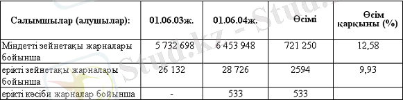 2004 жылғы 1 маусымдағы жағдай бойынша 16 жинақтаушы зейнетақы қорларының 11-і жалпы сомасы 1 301, 9 млн. теңге (қорлардың меншікті капитал көлемінің 19, 81%) резервтік капиталды құрды.