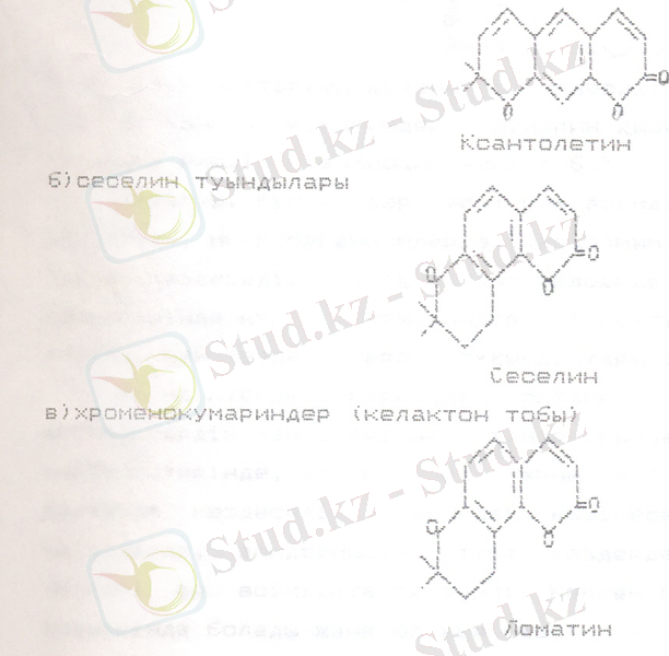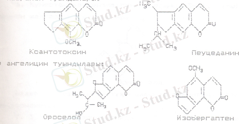 2. Фурано кумариндер не кумарон - α - пиронадар, оларда орынбасарлары бензол, фурар не пиран сақиналарында кездеседі.