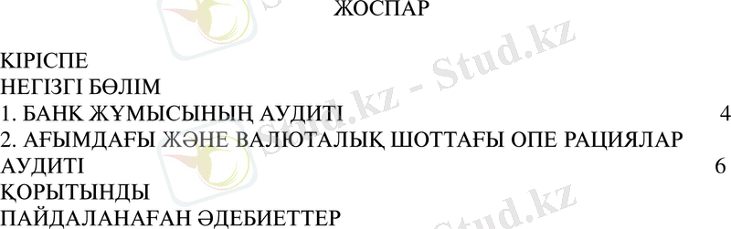 - БАНК ЖҰМЫСЫНЫҢ АУДИТІ