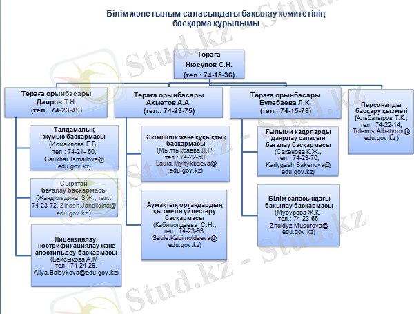 Қазақстан Республикасының Білім және ғылым саласындағы бақылау комитетінің құрылымы, миссиясы және негізгі функциялары