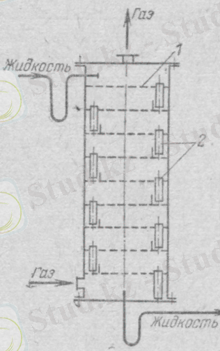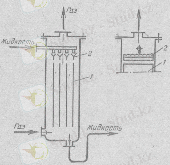 Насадкалы колонналарда (сурет 1) насадкалар (1) газ және сұйық өтетін таяныш торларға (2) орнатылады. Колоннаның жоғарғы жағынан арнаулы таратушы (3) арқылы сұйық шашыратылып беріледі де, насадкалы денелердің бетін сұйықтандырып, төмен қарай ағады.