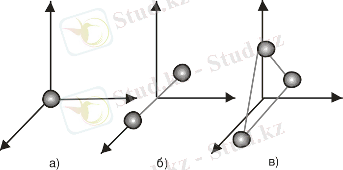Үш атомды және көп атомды бейсызықты молекулалардың алты еркін дәрежелері бар: үшеуі ілгерілемелі және үшеуі айналмалы қозғалыстардікі деп есептелінеді, і = 6. Сурет 11, в) жағдайы.