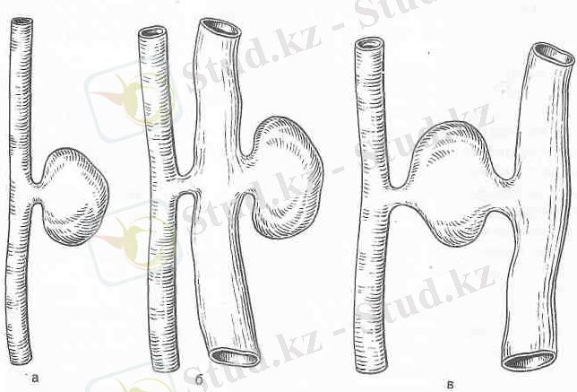 Патогенезі . Артеовеналық және комбинирленген аневризмалар ауыр гемодинамикалық бұзылысқа әкеледі. Артериалды қан венаға өтіп ондағы қысымды жоғарылатады және жүректің оң жақ бөлімдеріне көлемдік қысым түсіреді. Веналық стаз нәтижесінде беткей веналар кеңейеді, ісіну және дисталды бөліктерде трофикалық өзгерістер пайда болады. Жүрек гипертрофиясы, кейін миогенді дилятациясы, одан жүрек жетіспеушілігі дамиды.