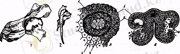 зінің қалталанып ісініуі; 2-сиякөк- тозаңқап; 1-эпидерма, 2-эңдотеций