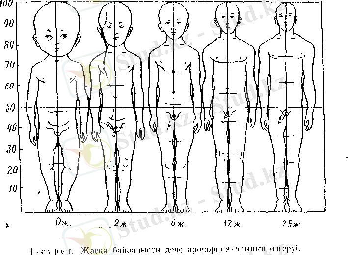1 - сурет. Жасқа байланысты дене пропорцияларының өзгеруі.