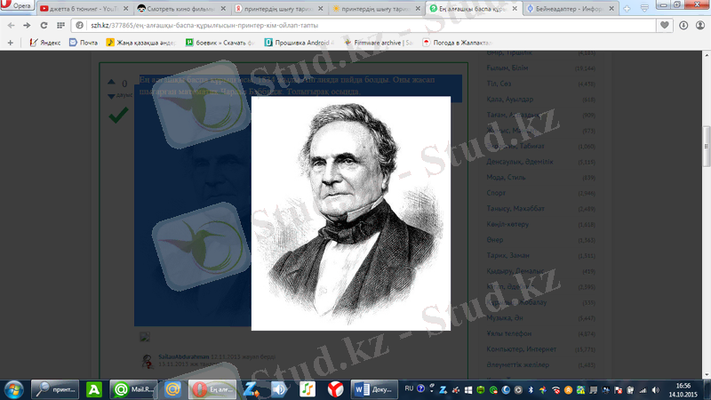 Ең алғашқы баспа құрылғысы, 1834 жылы Англияда пайда болды. Оны жасап шығарған математик Чарльз Бэббидж.