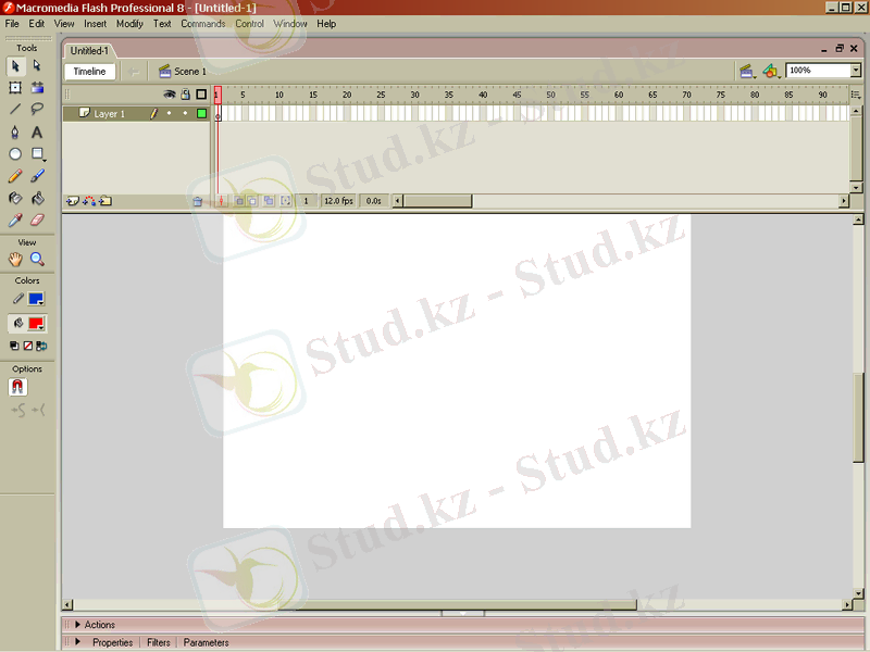 Жұмысты бастамас бұрын Flash программасын Пуск=> Программы => Macromedia=> Macromedia Flash MX командасы арқылы қосамыз.
