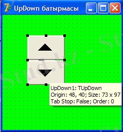 Orientation - батырманың орналасуын көрсетеді, батырмалар тік немесе көлденең орналасуы мүмкін. UpDown батырмасының бейнесі :