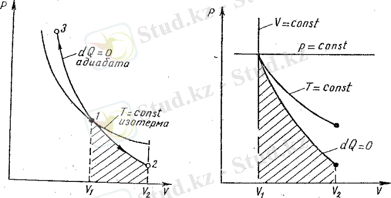 изобаралық ұлғайуын көрсетеді де, штрихталған аудан изобаралық жұмыстың шамасын анықтайды: