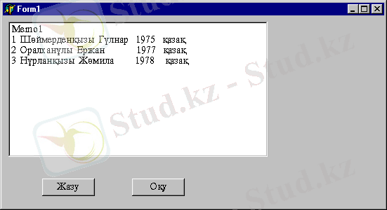 4. 1-сурет. Memo1 терезесiне шығарылған файл