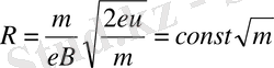 Қарапайым массалы - спектрометрдегі лампада электрондар мен молекулалардың соқтығысуы нәтижесінде пайда болған газ ионизациясы болады. Иондардың бір бөлігі лампаның тесігі арқылы электр өрісіне түседі, мұнда ол жылдамдатылады да жіңішке үйілмеге айналады. Иондардың жылдамдығын mv /2/ 2 = eu арқылы табуға болады. Мұндағы u - тездетілген кернеу. Сосын иондар магнитті өріске түседі. Ньютонның екінші заңы бойынша mv 2 /R = evB. Осы екі қатынас арқылы радиус мынаған тең