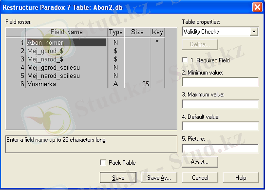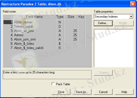 Сурет. 1 - Database Desktop утилиті: ДҚ кестесінің құрылымын анықтау терезесі