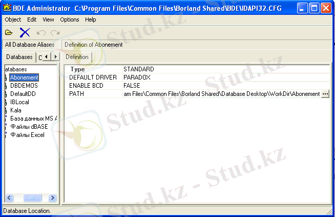 BDE Administrator утилиті Delphi - мен байланыста болуы тиісті.