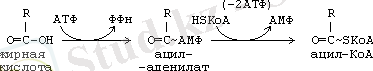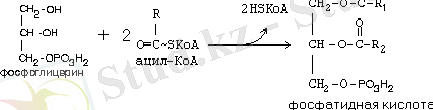 Бұл жерде АТФ-тің АМФ-ке дейін терең ылырауы байқалады (тотығып фосфорлануға түседі) . Сондықтан АТФ+АМФ 2 АДФ реакция болады. Сондықтан май қышқылдарынан активтенуіне 2 АТФ жұмсалуына эквивалентті болады. Майлардың синтезі жолындағы келесі этап фосфатид қышқылының түзілуінен басталады.