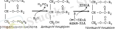 Триацилглицериннің ситезіне келесі екі реакция аяқтаушы болып табылады: