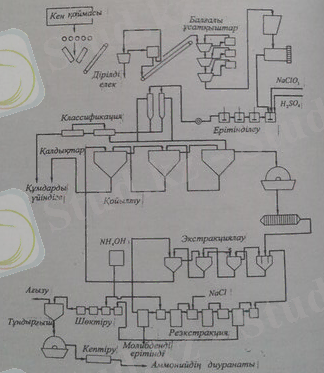 Ерітінділеу - экстракциялау технологиялық сұлбасын шет елдерде көптеген өндірістер пайдаланады. Уран кендерін өңдеуге арналған типтелген сұлбаның бірін АҚШ-та (Гранте, Нью-Мексико) пайдаланады (1-сурет) . Бұл ядролық отынды өндіретін өндіріс тәулігіне 3000 т болатын төменкарбонаттық (құрамында 0, 15% U, 0. 4% V 2 O 5 және 0, 01% Mo болатын) кенді өңдейді.