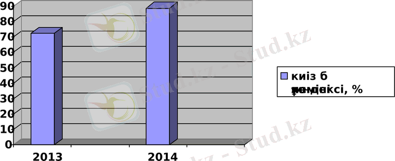 ҚР-да киіз бұйымдарының нақты көлемінің индексі 2014 жылы 2013 жылмен салыстырғанда артты. Мәселен, киіз бұйымдары өндірісінің индексі 2013 жылы 72, 5%, 2014 жылы - 88, 9% (ұлғаюы 16, 4% құрады) құрады.