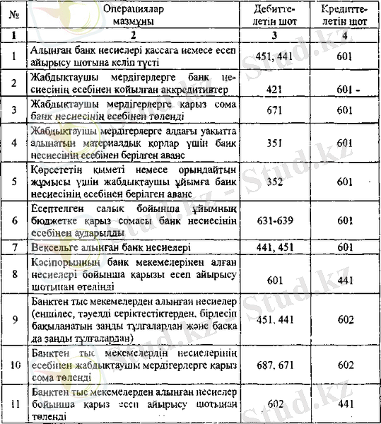 К-т: «Банк мекемесінің қарызы» шоты түрінде бухгалтерлік жазуы жазылады.