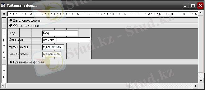 Оныкестені қолдан құру режимі деп те атауға болады, өйткені кесте режимінде кесте құру командасын берген соң, экранда қолдануға дайын кесте құрылады да, қолданушы оны толтырумен айналысады. Кестені мәліметтермен толтырмас бұрын оның өрістеріне қажетті жаңа атаулар беріледі . Ол үшін, тышқанды өріс тақырыбына апарып тышқанды екі рет шертіп, өріс атауын тереміз.