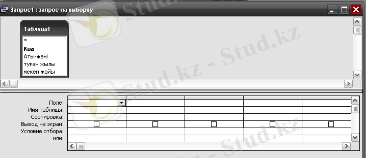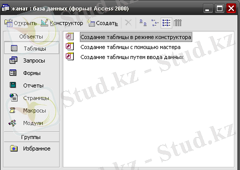 2. Конструктор - күрделі шарттарды қанағаттандыратын сұраныс құруға арналған негізгі құрал. Сұраныс конструкторы арққылы жаңа сұраныс кестесін құруға және бұрыннан бар сұраныс кестесінің құрылымын көруге немесе оны өзгертуге болады.