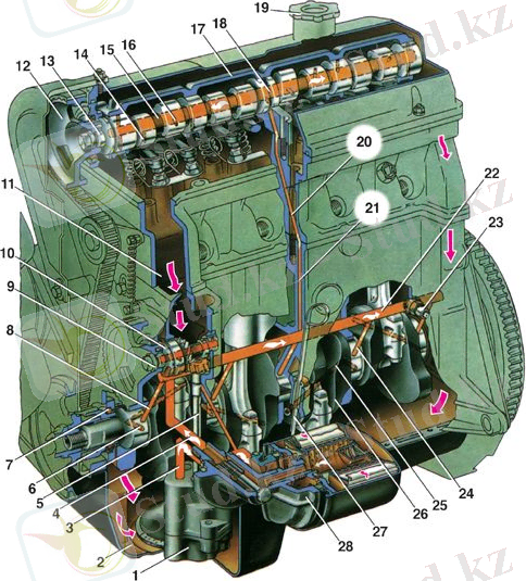 Майлау жүйесі үйкелетін бөлшекерді майлайды және оларды салқындатады, желініс және күйе қалдықтарды шайып тазалауды қамтамасыз етеді.