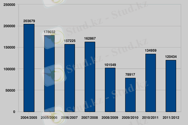 - республика бойынша сырттан келетін студенттер саны 128950 адамды құрайды;