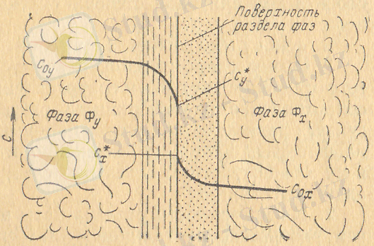 Сурет1. Масса өту процесінде фазаларда концентрациялар таралу сұлбасы.
