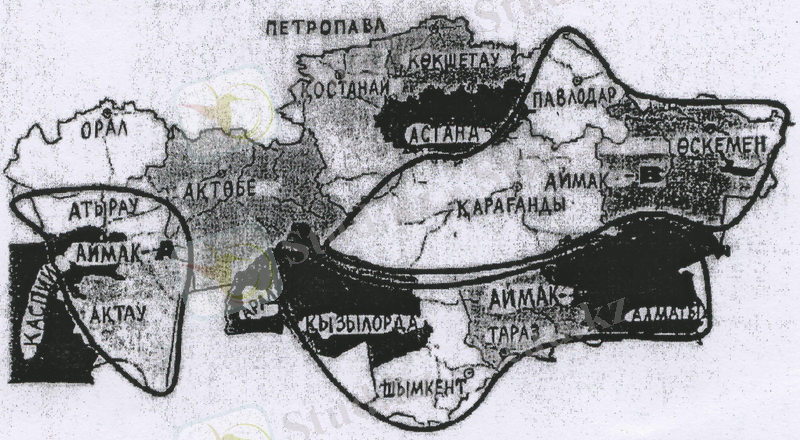 Қазақстандағы қазіргі кездегі экологиялық мәселелерге байланысты бірнеше экологиялық аймақтарын көрсетуге болады. (1-сурет) .