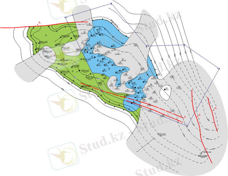 Сурет 1. 3 - Шығыс Мақат тұз күмбезінің сұлбалық геологиялық картасы