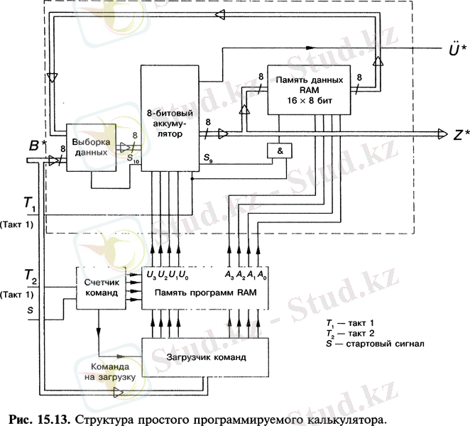 Төменде қарапайым бағдарламалы есептеуіштің схемасы көрсетілген.