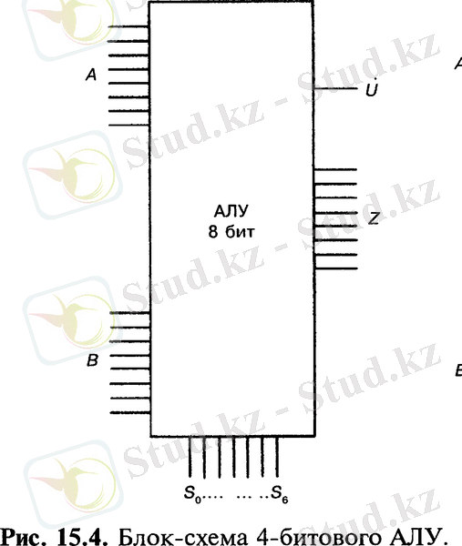 АЛҚ 4 биттік сөз үшін кеңейтілген азайтөыш сумматордан құрастырылады. 4 Биттік кіріс таңдалған төрт мультиплексор арқылы 4 биттік Z шығысына береді.