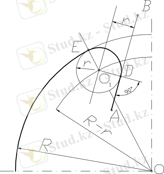 7 сурет - R1 және R2 радиустары доғасының түйіндесуі