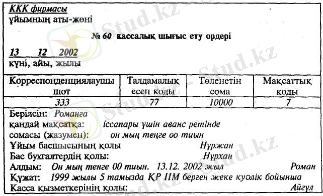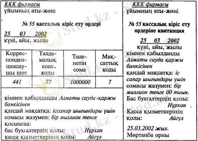 К-т: Ақшалар шоты 1 тг.