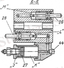 Қысқыштың кері қозғалысында упор 15 (7) золотниктің аяғынан кетеді, “K” аумағындағы май ауа қысымының нәтижесінде “/” аумағында кері клапандар 24 немесе 25 ашылып (1, б-суретінен көреміз), “АР”(“1”) аумағына ағады және золотник шығыс жағдайына қайта келеді.