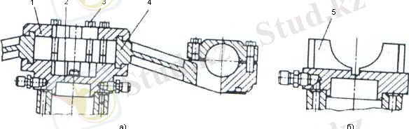 Қысқыштың қозғалыс жетегі гильзадан 12 тұратын пневмоцилиндр болады (1, а-сурет) . Гильзаның ішінде толық шток-поршень 13 орналасқан, оның ішінде подшипникке қысқышпен бекітілген үш шекті вал 11 орналасқан. Гильзаның фланцтарына корпустар 17, 10 бекітілген.