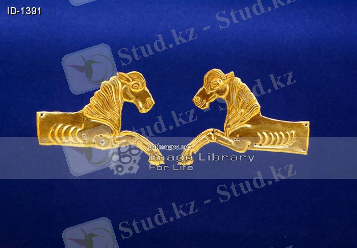 Сақ тайпаларының мифологиялық бейнелерінің бірі - жылқы болып есептелінген. Бас киімде бір-біріне қараған екі жылқы бейнесі кездеседі. Ол кәдімгі мініс жануары, әлем аймақтарының бірінен-біріне өтудің көлік құралы, тәңірдің бұйрығын сақтап жеткізуші, дүниені жалғастырушы буын. Сонымен қатар жылқы адамдар әлемі мен аспан әлемі арасындағы дәнекер болған және ол өзінің иесіне өлімнен кейінгі сапардан соңғы мақсатына жетуіне көмектеседі деген. Сақ жауынгерінің бас киімінің дәл ортасында таңғажайып қанатты тұлпарорналасқан. Жылқы - сыннан өткен дос, жолдас, соғыс қаруы, ата-бабалар дүниесімен қарым-қатынас құралы ретінде көрінеді. Сонымен қатар салтанатты рәсімдік, тәңірлік және аластаушы жануар қызметін атқарған.