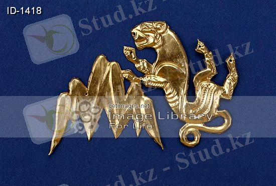 Бас киімнің артқы жағындағы табиғат көрінісін тау тәріздес әшекей бейнелеп тұр. Ежелгі кезде адамдар әлемді тауға ұқсатты, сондай-ақ Құдайлар мекені деп те есептеген. Ол адамды жаугершілікте, аң аулауға шыққанда сақтап жүреді деп сенген. Ал алтынды қасиетті металл ретінде күн шуағына теңеді және бұл бағалы металл хан билігін меңзеген.