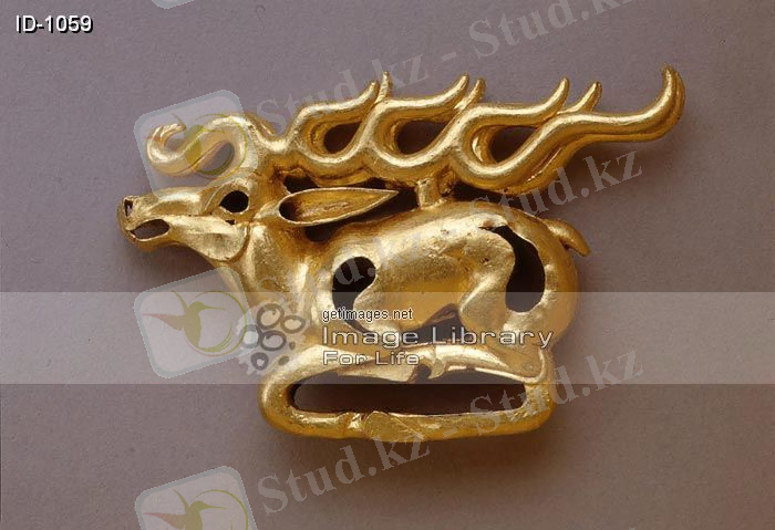 Бұғы мүйізінің үлкендігі сонша, тұтасымен арқасын жауып тұр және аяқтарын бүгіп жатыр. Бұғы ертеде тотемдік аң болып есептелді, яғни оған табынған. Ол мифологиялық, дүниетанымдық, діни және сақ тарихымен тығыз байланысты. Бұғының мүйіздері тым ұзын әрі салалы, арқасына қарай жайылған, сирақтары бауырына бүгілген. Ширыққан серпінді қалпы дәл берілген. Бұлшық еттері жиырылып тұрғандай әсер қалдырады.