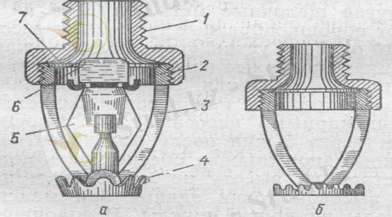 құрылғылар: 1-обойма; 2-сақина; 3-қамыт (хомут) ; 4-розетка; 5-жеңіл ерітін құлып; 6-шынылы қақпақша; 7-диафрагма.