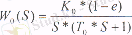 Бұл жобада алынған реттелу объектісінің беріліс функциясы келесі түрде болады: