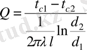 Бірқабатты цилиндрлық қабырғалар арқылы өтетін жылу ағыны, Вт мына формуламен анықталады: